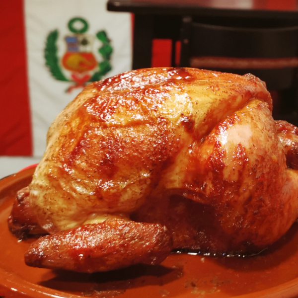 Pollo asado a la brasa, solo con salsa de huacatay.